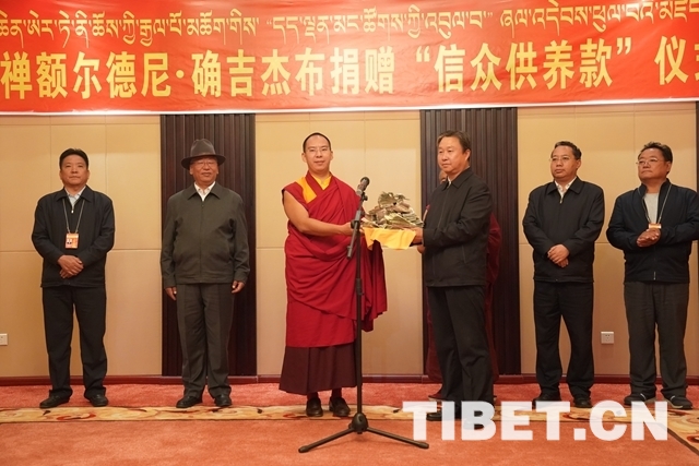 捐贈儀式上,十一世班禪說:“我現(xiàn)在養(yǎng)成了一個習(xí)慣,也是自己的心愿,這不是我個人的捐贈,我只是為廣大信教群眾轉(zhuǎn)贈供養(yǎng)款。信教群眾希望我能夠好好念經(jīng)、祈禱,能夠為護國利民、愛國愛教做一些努力,我一定不會辜負信教群眾的殷切期盼。我們自己生活都有保障,信教群眾這些供養(yǎng)款都是一分一分用心血掙來的,還是該回饋給山南,特別是捐助給當?shù)氐姆鲐毷聵I(yè)是最恰當?shù)??!?/p>