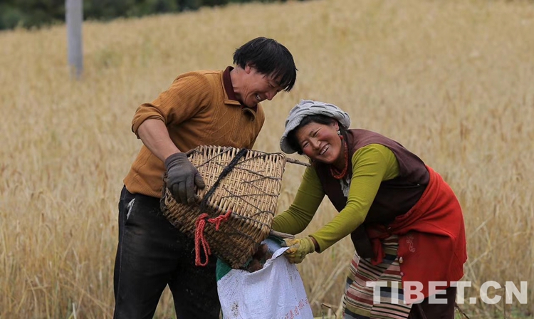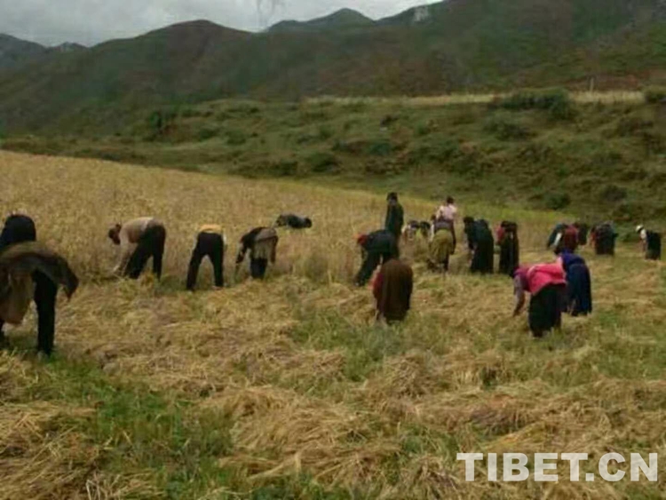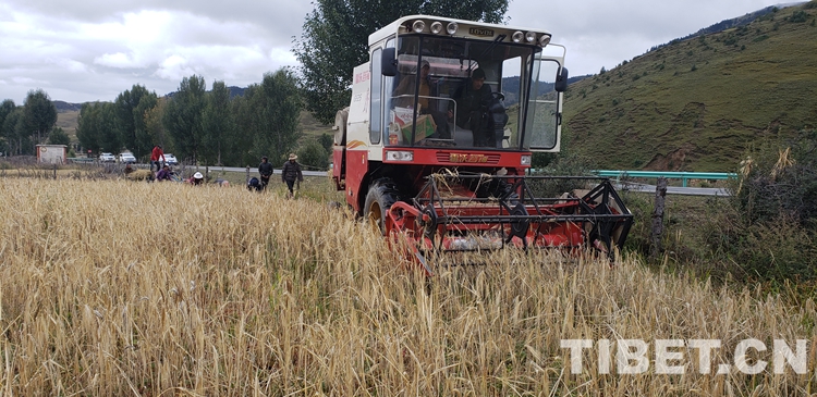 洛絨登巴家有10畝承包地,秋收成了大問題。過去秋收,家家都是人工手割,一人累了一天也割不了1畝地,耽誤農(nóng)時(shí)不說,還影響收成。像青稞麥類農(nóng)作物,太陽一曬,青稞崩落地了。像他家這么多的土地,用人工根本收不過來。甲洼鎮(zhèn)政府現(xiàn)擁有2臺(tái)聯(lián)合收割機(jī),收割、脫粒、裝袋三道工序一次完成!過去得10多人收一周時(shí)間的地,現(xiàn)在兩小時(shí)便搞定了,而且做到了顆粒歸倉(cāng)、秸稈還田!秋收時(shí)節(jié),整片地里,聯(lián)合收割機(jī)像技藝精湛的畫家,隨心所欲、胸有成竹、瀟灑自如地在壟間地頭揮毫!片片莊稼倒下后,袋袋糧食裝上拖拉機(jī)……那場(chǎng)面,甚是宏大而喜人!連洛絨登巴的岳母大人目睹秋收?qǐng)鼍昂?,也不由感慨地說:“這一眨眼的工夫,糧食已從田間送進(jìn)倉(cāng)了,簡(jiǎn)直像變戲法一樣!”