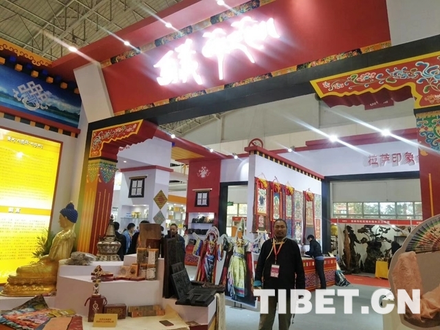 中國(guó)西藏網(wǎng)訊 10月25日至28日,第十三屆中國(guó)北京文化創(chuàng)意產(chǎn)業(yè)博覽會(huì)在京舉行。中國(guó)國(guó)際展覽館8011號(hào)館,紅瓦白墻的建筑風(fēng)格和異域元素的搭配吸引著眾人的目光。遠(yuǎn)遠(yuǎn)望去,門口立著一尊金身佛像,遠(yuǎn)處的墻上掛著唐卡,櫥窗里擺放著造型奇特的面具——西藏!走近點(diǎn),首先映入眼簾的是五顏六色的紙和染了墨水的木板雕刻字畫,再往里走,有木碗、石鍋、藏毯、藏香,還有布達(dá)拉宮造型的筆筒……各類文創(chuàng)產(chǎn)品讓人目不暇接。