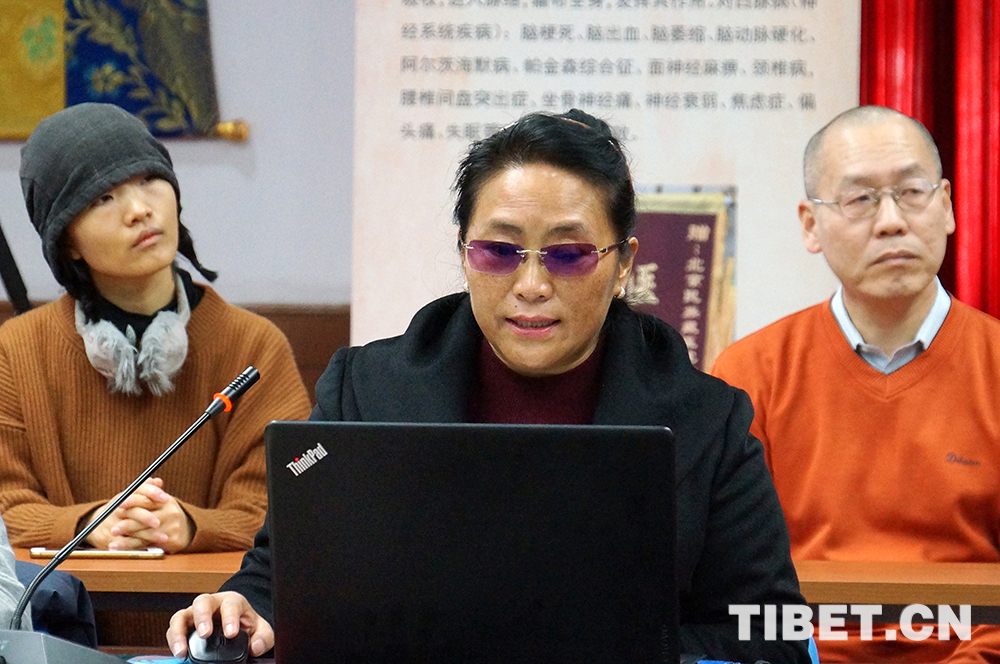 圖為西藏自治區(qū)藏醫(yī)院白瑪央珍院長(zhǎng)發(fā)言