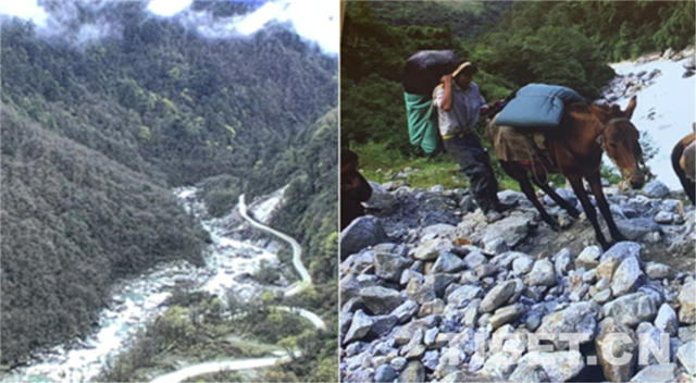 2013年10月31日,西藏自治區(qū)墨脫公路建成通車,結(jié)束了墨脫縣不通公路的“孤島”歷史,中國真正實現(xiàn)縣縣通公路。圖為墨脫公路開通前后對比圖。
