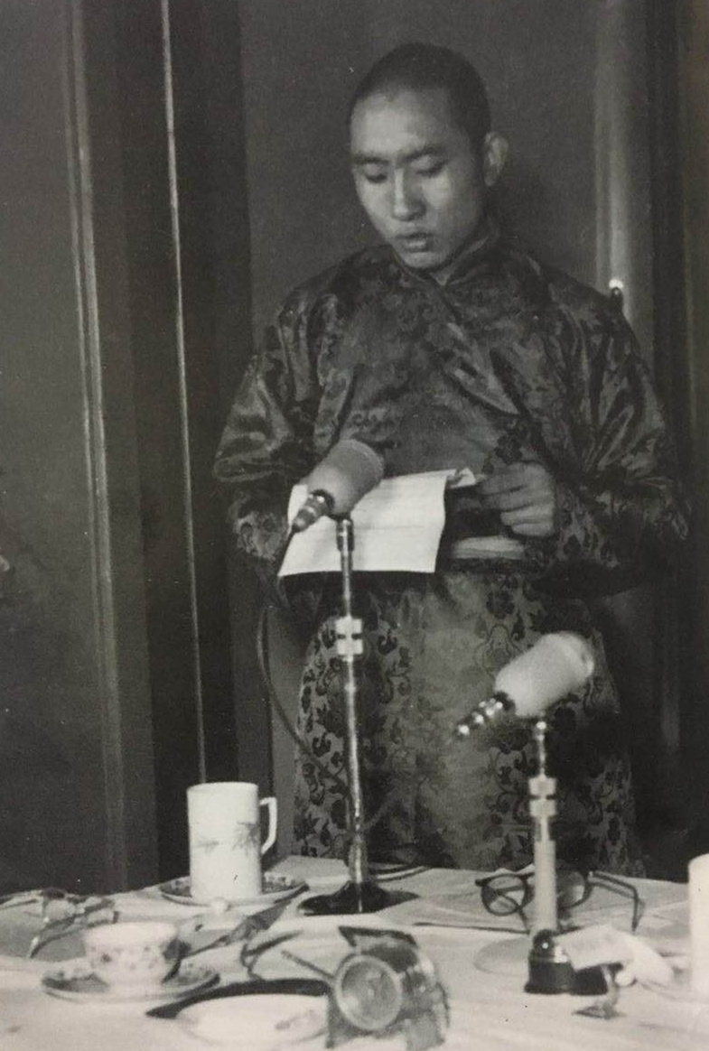 圖為1955年3月9日 十世班禪在國務院全體會議第七次會議上發(fā)言。翻拍自《班禪額爾德尼評傳》