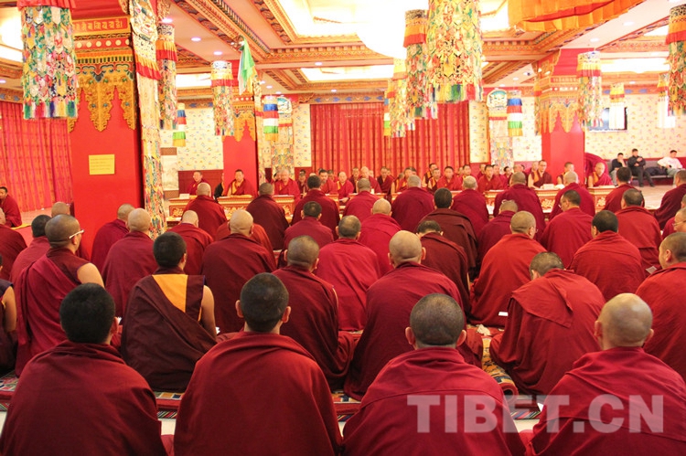 法會禮請全國政協(xié)常委、中國佛教協(xié)會副會長班禪額爾德尼?確吉杰布拈香主法,中國藏語系高級佛學院領導、經(jīng)師、學員及宗教界教職員工約130人參加法會。