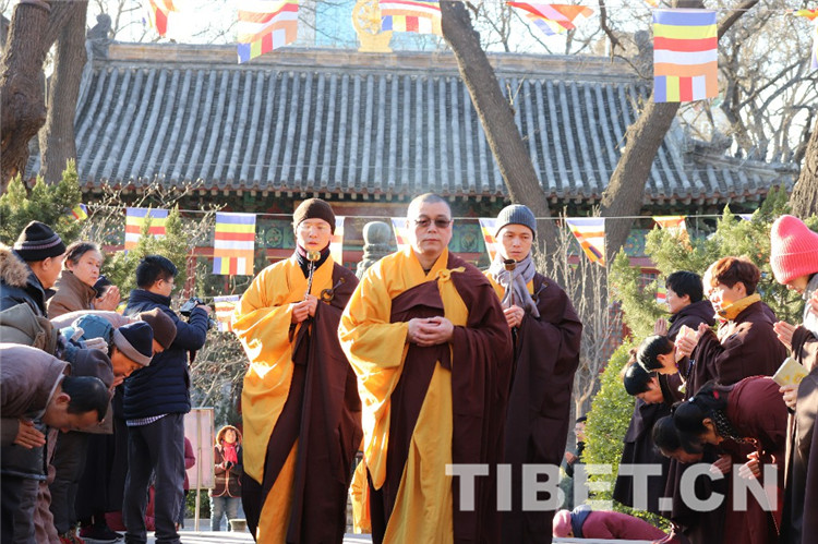 中國西藏網(wǎng)訊 今年適逢中國佛教協(xié)會名譽會長十世班禪大師圓寂30周年,1月28日上午9時,中國佛教協(xié)會及在京直屬寺院法師、工作人員、首都善信居士齊聚北京廣濟寺,隆重舉行紀(jì)念十世班禪大師圓寂30周年法會,深切緬懷十世班禪大師。法會禮請中國佛教協(xié)會演覺副會長、宗性副會長、祜巴等傣副會長主法,宏度副秘書長主持紀(jì)念儀式。三位法師拈香主法,帶領(lǐng)僧眾莊重誦經(jīng),圓滿完成法會儀軌。