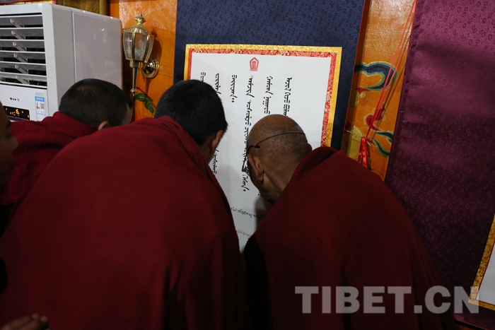 此次活動共征集書法作品80余幅,包含藏文、梵文、漢文、英文,其中藏文書法當(dāng)中又有烏金和烏梅體、草書體和古藏文體等多種書法類型,不僅展現(xiàn)了藏文書法精美多樣的字體和悠久歷史,而且表達(dá)了全寺僧眾深切緬懷大師的至真感情和銘記大師教誨,積極發(fā)揚藏傳佛教愛國愛教優(yōu)良傳統(tǒng)的堅定信心。(中國西藏網(wǎng) 記者/索朗加措、趙耀 圖片由扎什倫布寺寺管會提供)