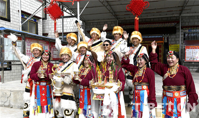 圖為阿壩林卡社區(qū)老年文藝隊(duì)在藏歷新年初一的演出圓滿結(jié)束。