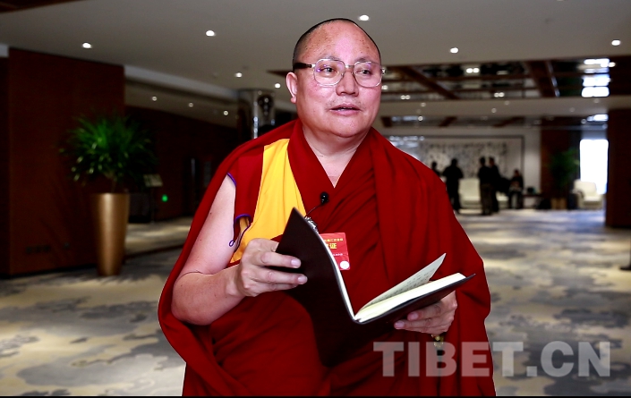 圖為全國(guó)政協(xié)委員達(dá)扎活佛接受中國(guó)西藏網(wǎng)采訪。攝影:陳衛(wèi)國(guó)