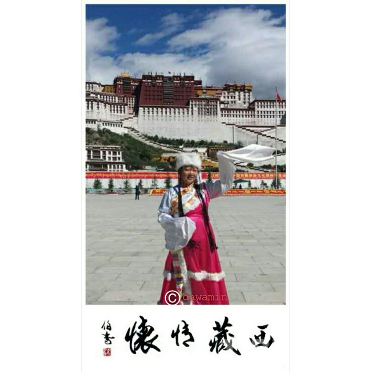 圖為2014年10月,杜琳的女兒達(dá)娃身著藏裝,在布達(dá)拉宮廣場前留影。圖片由杜琳本人提供