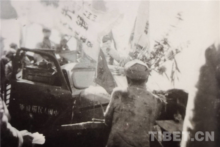 圖為1951年12月,進(jìn)藏先遣團(tuán)154團(tuán)在西藏江孜著名的抗英戰(zhàn)場(chǎng)宗山下召開(kāi)慶功大會(huì)。