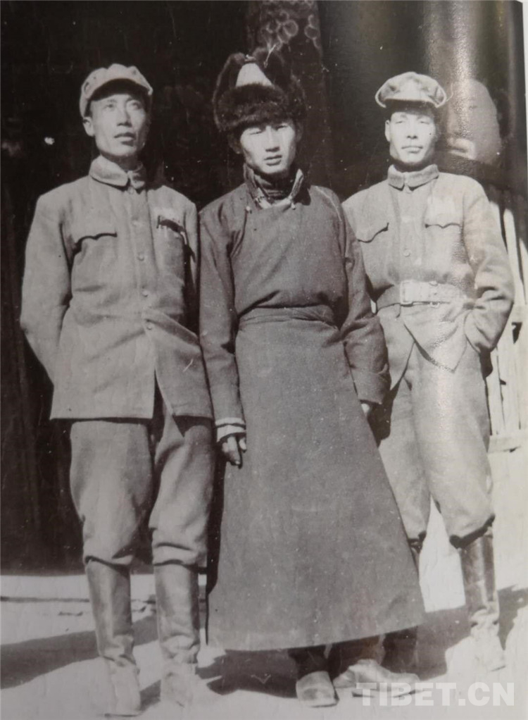 圖為1951年11月18日,團(tuán)長(zhǎng)郄晉武(右)政委楊軍(左)與江孜喇嘛寺白吉堪布(中)合影。