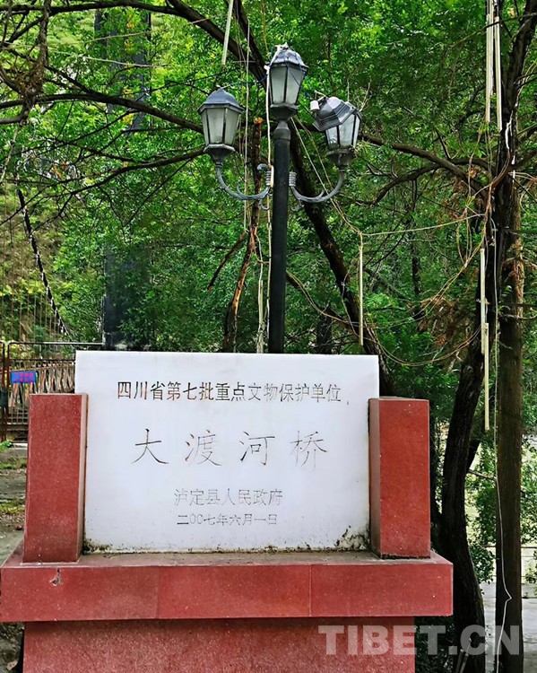 七十年代初,隨著祖國社會主義建設事業(yè)的發(fā)展,又一座具有民族色彩的雙曲拱橋飛跨在大渡河上,從此,大渡河橋作為戰(zhàn)備橋保護起來。1999年,該橋被列入甘孜藏族自治州第一批重點文物保護單位。