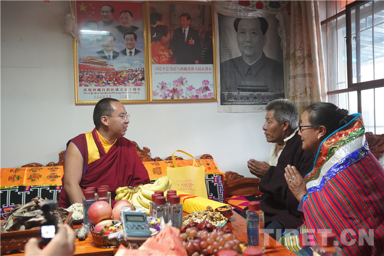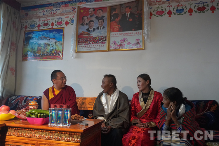 在旺堆平措家中,十一世班禪仔細詢問了他們一家人的生產(chǎn)生活狀況。“以前的生活和現(xiàn)在的生活相比變化大嗎?”“父輩的生活怎么樣?”“你們身體怎么樣,膝蓋疼嗎?”“出去旅游嗎?”“冬天怎樣取暖?”“下雪了牲畜怎么辦?”“電視能看到多少頻道?”十一世班禪與旺堆平措一家輕松愉快地聊著家常。