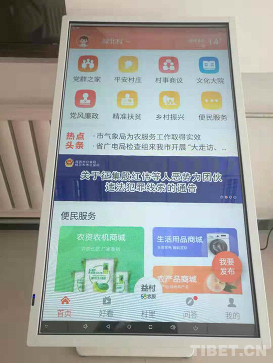 圖為格爾木市郭勒木德鎮(zhèn)政府大廳擺放的“昆侖紅”手機(jī)應(yīng)用軟件首頁 攝影:郝江震