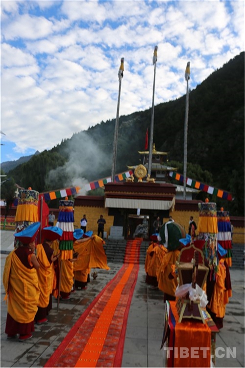 吉隆溝里草木蔥蘢、流水潺潺。8月22日,十一世班禪前往強(qiáng)真寺朝拜禮佛,按照宗教傳統(tǒng)儀軌,寺院僧人列隊(duì)恭迎。強(qiáng)真寺位于吉隆鎮(zhèn)邦興村,寺廟始建于7世紀(jì),和拉薩的大昭寺屬同一時(shí)期,是格魯派一座歷史悠久的古寺廟。