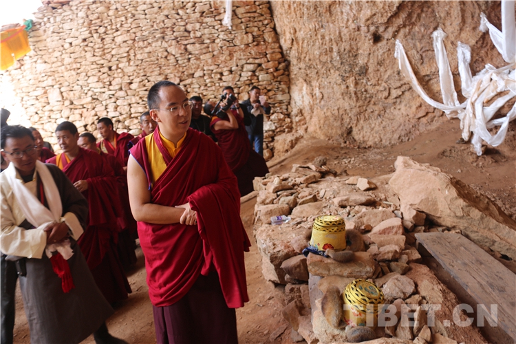 吉隆溝平均海拔2850米,風(fēng)光旖旎,鐘靈毓秀,宗教文化積淀也十分深厚。900多年前,西藏最著名的密教修行者、藏傳佛教噶舉派宗師米拉日巴就在這里出生和修行。 8月21日,十一世班禪來(lái)到米拉日巴出生地朝拜。當(dāng)年米拉日巴居住的地方如今已修建了佛塔,十一世班禪拾級(jí)而上,沿著山脊來(lái)到米拉日巴當(dāng)年修行的地方“剛足普”,這是米拉日巴學(xué)成返鄉(xiāng)后隱居苦修的修行洞,也是米拉日巴進(jìn)行實(shí)修的首座洞穴。