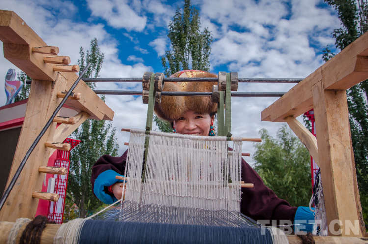圖為開幕式上被搬上舞臺(tái)的氆氌紡織技藝 攝影:趙耀