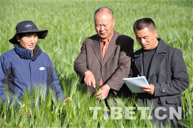 禹代林1964年出生于四川。1985年,他大學(xué)畢業(yè)后來到西藏自治區(qū)農(nóng)牧科學(xué)院農(nóng)業(yè)研究所,致力于青稞新品種的培育和推廣。34年來,他完成了5000份大麥資源特征性的鑒定與繁種入庫,研發(fā)推廣“藏青2000”青稞品種,農(nóng)民種植平均每畝增產(chǎn)50斤以上增收。如今,他已經(jīng)推廣了9個青稞新品種,栽培技術(shù)示范推廣30余萬畝,累計(jì)培訓(xùn)農(nóng)民達(dá)5.5萬人。圖為2014年禹代林(中)和同事在白朗縣觀察記載藏青2000的主要特征、特性 禹代林供圖。