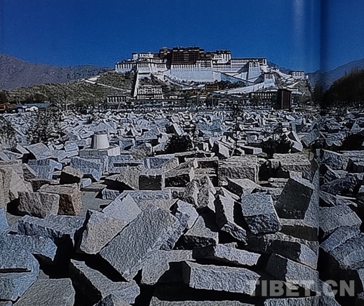 圖為布達(dá)拉宮廣場(chǎng)鋪設(shè)工程現(xiàn)場(chǎng)資料 翻拍:王淑