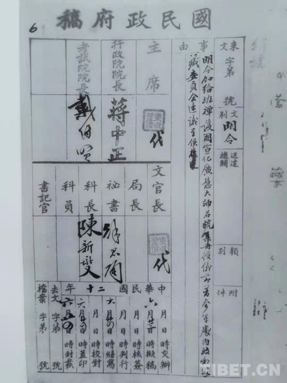 6月24日,首次應邀到南京的九世班禪受到國民政府高度評價,予以最高褒譽,因九世班禪“翊贊和平統(tǒng)一,此次遠道來京眷念勛勞,良深嘉慰”,并加授予“護國宣化廣慧大師”名號。