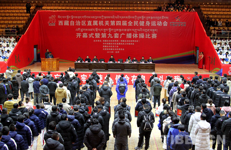 11月30日,西藏自治區(qū)直屬機關(guān)第四屆全民健身運動會在拉薩開幕,來自區(qū)中直各單位、企事業(yè)單位的運動員、觀眾代表在西藏體育館參加開幕式。