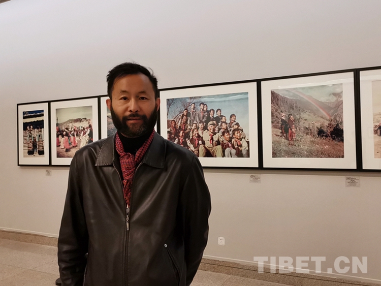 記者發(fā)現(xiàn),展品中有很多關于西藏的攝影作品,串聯(lián)起二十世紀西藏發(fā)展的珍貴歷史。其中,著名攝影家藍志貴的攝影作品記錄了1950至1970年間諸多在西藏發(fā)生的重大歷史事件。原來,黃建鵬與藍志貴相交多年。他說:“我從2005年開始,先后40次采訪藍志貴先生,時間跨度長達14年,為他攝影作品建立檔案,詳細記錄他的攝影故事。比如,這一張照片是藍先生于1965年9月1日在拉薩拍攝的《西藏自治區(qū)第一屆人民代表大會第一次會議》。當時藍先生告訴我,他為了找一個更好的角度拍攝,爬上房頂將瓦片揭開拍攝這張會議全景,記錄下重要的歷史瞬間。還有《“五好標兵”大扎西與藏族少年兒童在一起》《國慶十周年藏族少年跳新疆舞》等這一組彩色照片,可以說是藍志貴先生拍攝西藏的第一批彩色攝影作品,非常珍貴,他們所展現(xiàn)的故事也非常讓人震撼和感動?!?/p>