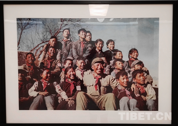 圖為藍志貴的攝影作品《“五好標兵”大扎西與藏族少年兒童在一起》 翻拍:王茜