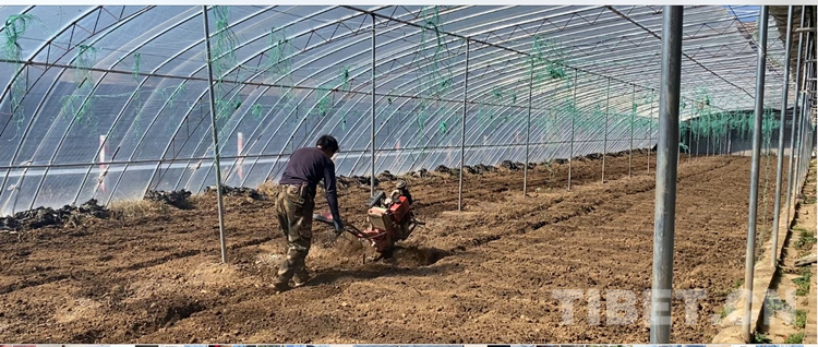 中國西藏網(wǎng)訊 “噠、噠……”2月27日,在四川省甘孜藏族自治州理塘縣濯?,F(xiàn)代農(nóng)業(yè)園區(qū)的康藏陽光種植基地,濯桑鄉(xiāng)漢戈村村民降央開著手扶拖拉機(jī)在蔬菜大棚里耕地。