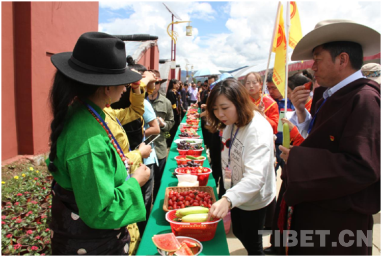 資料圖:在甘孜州農(nóng)特產(chǎn)品產(chǎn)銷對(duì)接會(huì)理塘分會(huì)場(chǎng)上,極地果蔬受到商家和游客喜愛(ài)