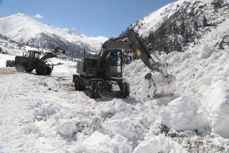 為盡快恢復(fù)通行,安全員時刻關(guān)注山體情況,確保一旦發(fā)生次生雪崩災(zāi)害能夠及時傳達撤退命令。操駕員駕駛救援機械相互協(xié)調(diào)作業(yè),快速清理路基塌方體。官兵們還給滯留群眾發(fā)放了食物。
