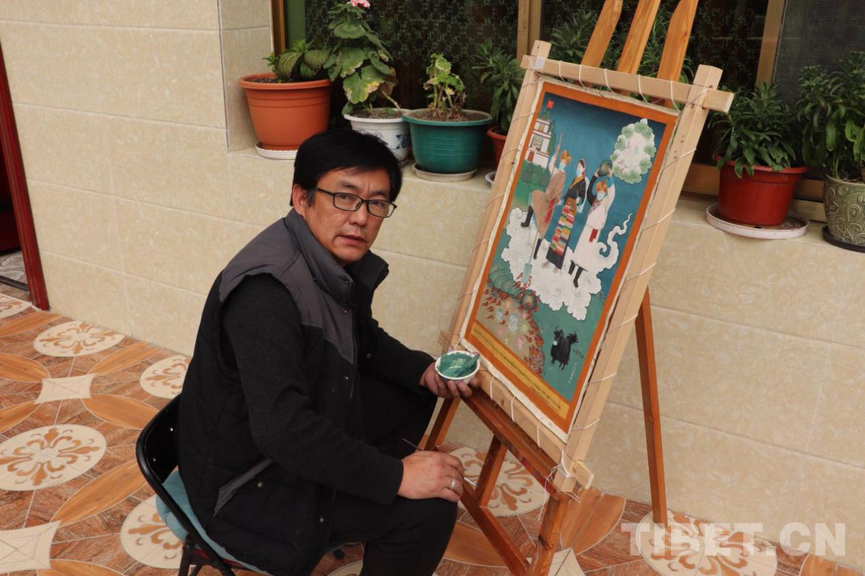 繪制完戰(zhàn)“疫”主題唐卡,旦巴云丹并沒有停下來。他要忙著經(jīng)營(yíng)堆龍日姆勉唐派唐卡藝術(shù)農(nóng)民專業(yè)合作社。這個(gè)自2015年成立的合作社,已有15名群眾參與其中。旦巴云丹要負(fù)責(zé)他們的唐卡繪畫教學(xué),還要負(fù)責(zé)合作社產(chǎn)品對(duì)外銷售,只有這樣,才能讓周邊的群眾也跟著致富。(中國(guó)西藏網(wǎng) 記者/王媛媛 圖片由旦巴云丹提供)