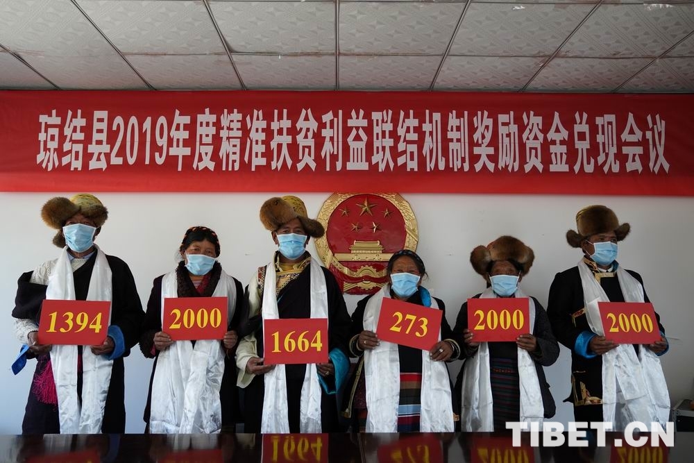2020年3月26日,瓊結(jié)縣召開(kāi)精準(zhǔn)扶貧利益聯(lián)結(jié)機(jī)制獎(jiǎng)勵(lì)資金兌現(xiàn)會(huì)議,嘎瑪旺堆作為代表參加了會(huì)議,同時(shí)拿到了2000元的獎(jiǎng)勵(lì)資金。當(dāng)時(shí)他說(shuō):“2017年11月,黨的好政策讓我們一家摘掉了貧困戶(hù)的‘帽子’。今天領(lǐng)到了縣里獎(jiǎng)勵(lì)資金很激動(dòng),感謝黨、感謝政府?!?/p>