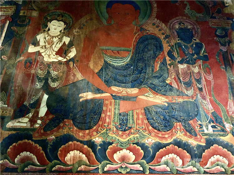 位于札達(dá)縣城西北的托林寺,建于公元996年,是阿里地區(qū)最古老的佛教寺院。它在整個(gè)藏傳佛教史中扮演了承上啟下的重要角色。托林寺原有三座大殿和近十座中小殿堂,以及僧舍、經(jīng)堂、佛塔等建筑,現(xiàn)保存較好的只有三大殿和托林塔,內(nèi)中的壁畫(huà)精美絕倫,為整個(gè)“古格壁畫(huà)”的重要構(gòu)成部分。