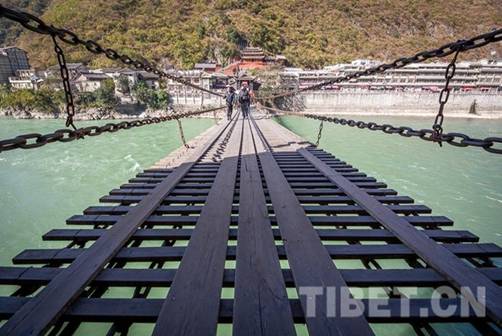 司機(jī)指著下游不遠(yuǎn)處說:“你看,那才是瀘定橋?!蹦赣H順著司機(jī)指的方向,極目眺望,但見不遠(yuǎn)處瀘定橋若隱若現(xiàn)在薄霧中,宛如害羞的少女臉龐裹著薄如蟬翼的面紗,在微風(fēng)吹拂下似露,欲遮,嬌柔可愛!“?。∵@就是舉世聞名的紅軍十八勇士在槍林彈雨中奮不顧身從敵人手里奪下的瀘定橋。”母親情不自禁地喊了出來。后面的汽車在催促著他們前行,司機(jī)非常惋惜地說:“要不是有緊急軍務(wù),我一定帶上嫂子過去,上橋親身體驗(yàn)一下?!币荒臧牒螅鲇趯?duì)瀘定橋的敬仰和好奇,母親返回內(nèi)地時(shí)特地上了趟瀘定橋,真真切切感受了一番瀘定橋的壯觀、驚險(xiǎn)、蹣跚行走在上面那種驚心動(dòng)魄;橋下20米左右的河水逐浪翻滾,波浪滔天,好似排山倒海,聲震蒼穹,給人一種大氣磅礴、氣吞山河之感。正如當(dāng)年毛主席帶領(lǐng)紅軍長征過大渡橋時(shí)所感,欣然寫下了豪邁的千古絕唱《七律?長征》:“金沙水泊云崖暖,大渡橋橫鐵索寒……”