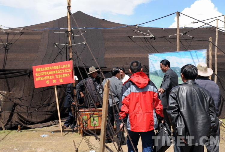 這是人們在排隊(duì)參觀那曲賽馬會(huì)所展示的巨大黑色牦牛毛帳篷。這頂大“黑帳”占地面積3600平方米、內(nèi)部有效面積666平方米,可供上百人自由活動(dòng)(唐召明2009年8月12日攝)