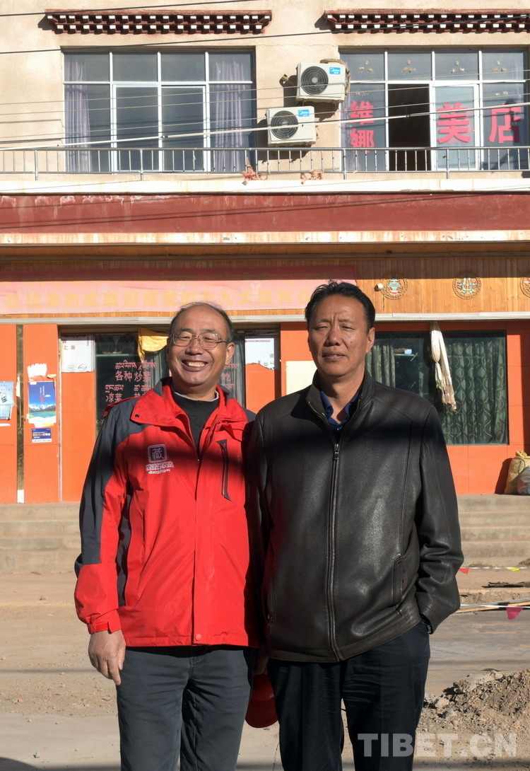 這是唐召明(左)與那曲市副市長扎南(右)在雙湖縣城合影留念(唐召明提供,2019年9月20日攝)