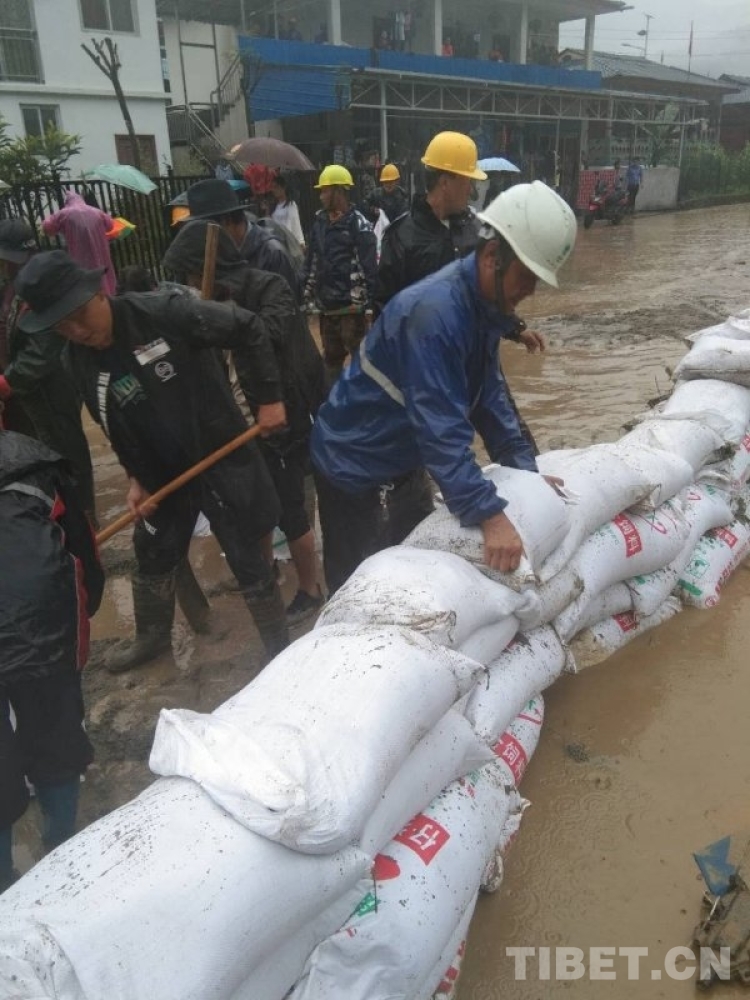 墨脫縣位于西藏自治區(qū)林芝市,近期因連續(xù)強降雨,造成墨脫縣背崩鄉(xiāng)背崩村引發(fā)局部洪水。由于山洪來得突然,村內(nèi)的排水道很快被沖下來的泥沙和樹木堵塞,項目部組織班組隊伍冒著大雨幫助當(dāng)?shù)厝罕?,共同清理排水溝,同時用麻袋裝入本來施工用的沙子,形成一道防護(hù)堡壘,有效地阻止了洪水沖入當(dāng)?shù)匾粚泳用窦抑?,將?zāi)害降到最低,保全了當(dāng)?shù)厝罕姷呢敭a(chǎn)安全。