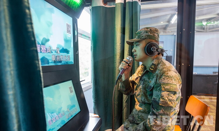 圖為邊防官兵正在移動唱吧內(nèi)唱歌 攝影:趙耀