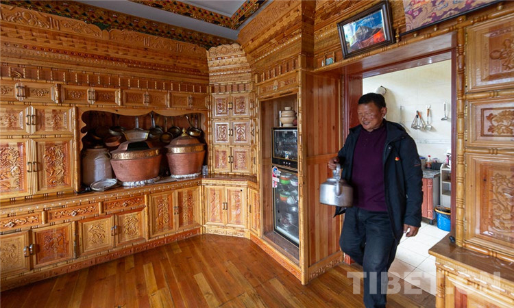 來到村民仁青家里,仁青正在煤氣灶上燒水?!捌綍r(shí)自己在工地上開裝載機(jī),現(xiàn)在家庭年收入10多萬元?!闭勂瓞F(xiàn)在的生活仁青開興地說,以前只有過年才可能吃到的大米,現(xiàn)在已經(jīng)是每家每戶的家庭便飯。