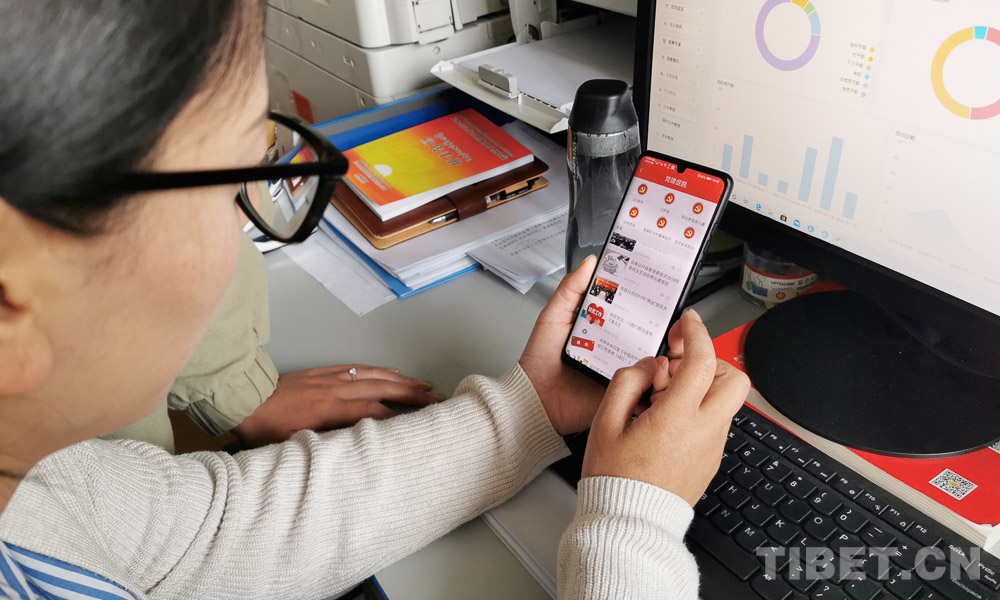 圖為基層工作人員正在使用“紅色北斗”智慧黨建系統 圖片由北京援藏指揮部提供