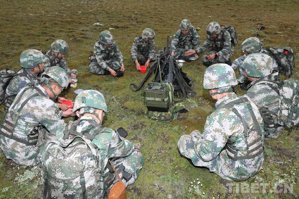 到達19號界樁后,巡邏官兵們坐在一起,拿出干糧,補充體力。在海拔5000多米的地方,連續(xù)翻山越嶺,體力嚴重透支,有些官兵一度出現高反,幸虧被戰(zhàn)友及時發(fā)現,吸氧緩解后,大家開始向最終目的地18號界樁進發(fā)。