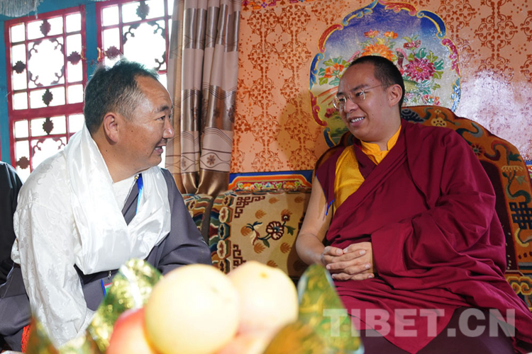 圖為十一世班禪在吞達村藏香制作園內(nèi) 攝影:王淑