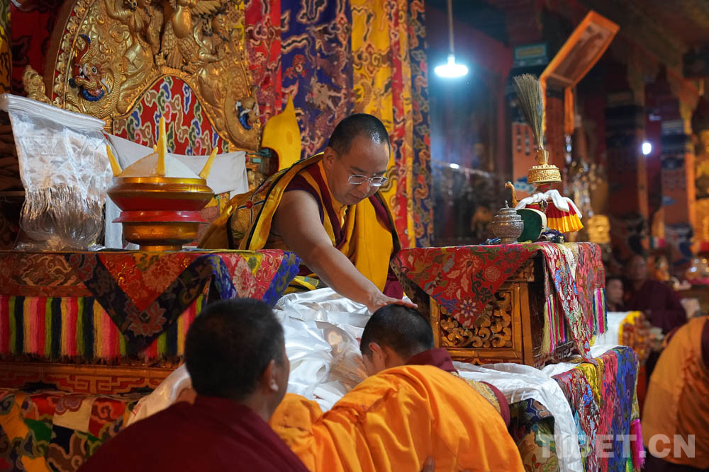 圖為十一世班禪在榮布熱登寺誦經(jīng)祈愿 攝影:王淑