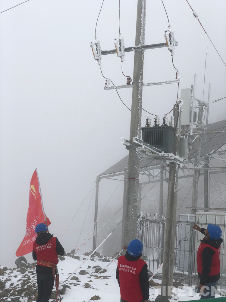 圖為國(guó)網(wǎng)西藏電力有限公司電力職工正在阿里地區(qū)運(yùn)維檢修