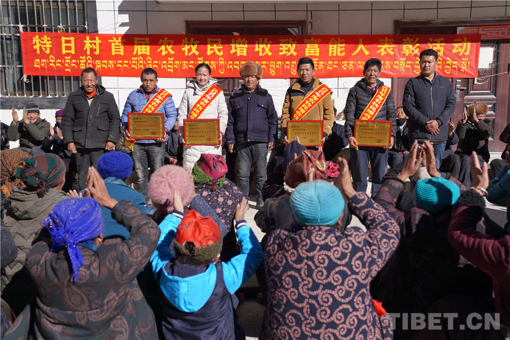 在表彰大會上,特日村第一支部書記米瑪扎西說:“這次特地從黨建經(jīng)費中拿出2000元,給4位致富能人表彰,就是為了鼓勵有更多的能人帶領大家共同脫貧奔小康?!毕乱徊剑濉皟晌毕M赃@次致富表彰大會為動力,最大限度發(fā)揮致富帶頭人示范引領和輻射帶動作用,以傳、幫、帶、教等方式帶領村民們向著共同富裕的目標不斷前進。