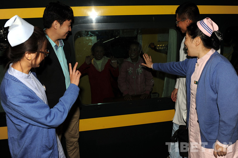 ——2014年10月16日,社會(huì)各界資助治療的西藏先心患兒其美拉姆在北京安貞醫(yī)院結(jié)束二次心臟手術(shù)治療后,乘火車返回西藏家鄉(xiāng)。