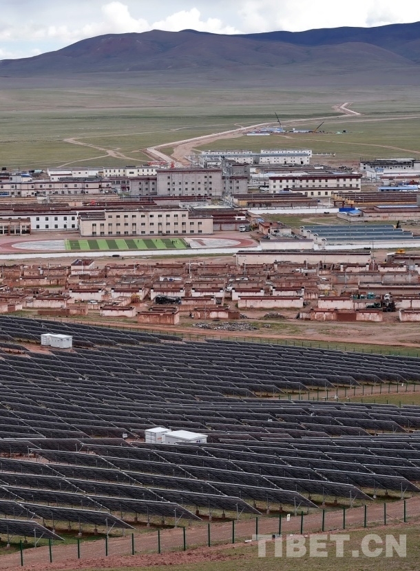 圖為藏北雙湖縣新建成的太陽(yáng)能光伏電站。照片前景所豎立的成片黑色板是用來發(fā)電的硅光電池板 唐召明2017年7月25日攝