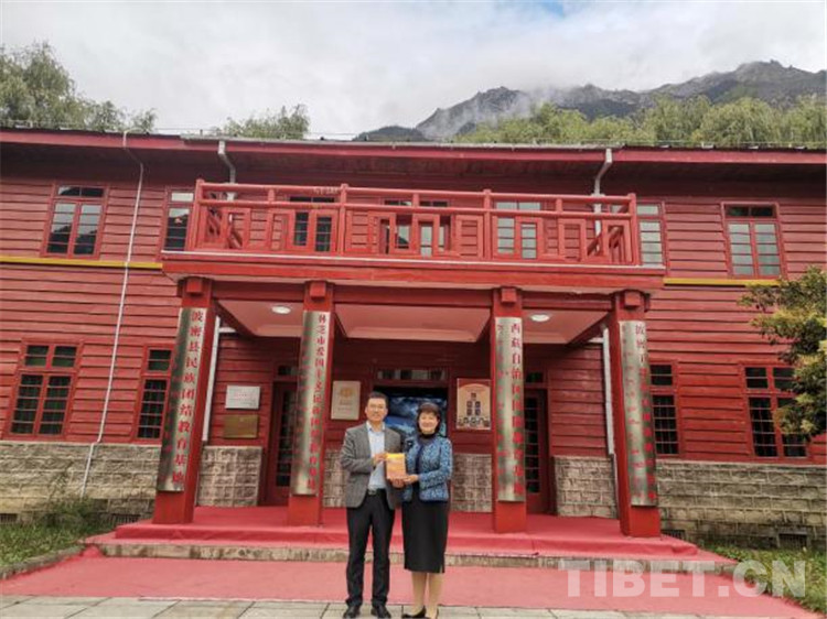 圖為18軍老戰(zhàn)士孟憲民的女兒孟桂琳向波密紅樓捐贈父親的回憶錄《崢嶸歲月稠》(未出版)
