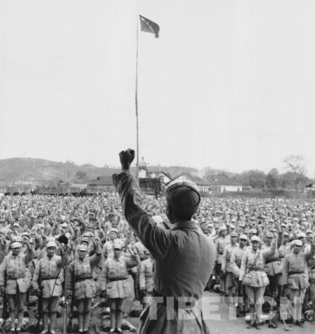 圖為1950年3月,十八軍在四川樂山舉行進(jìn)軍西藏誓師大會(huì)。
