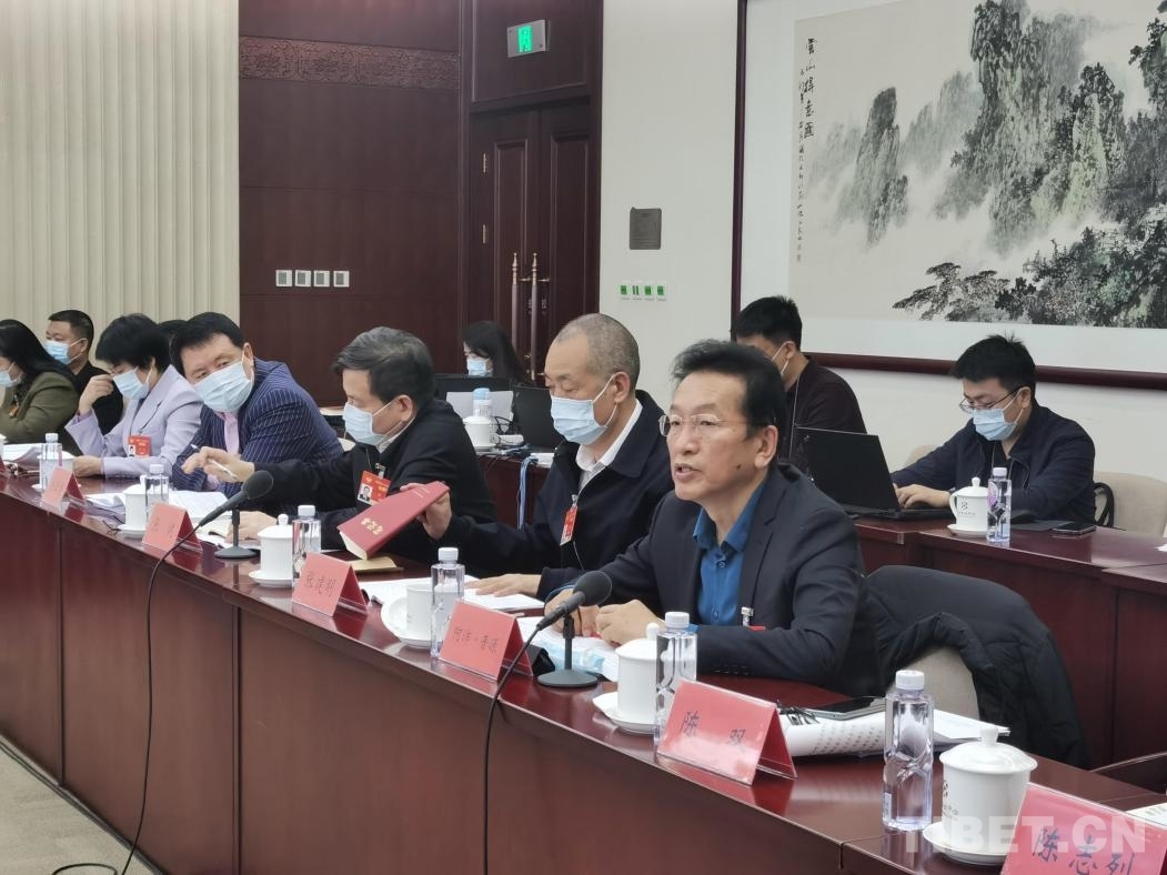 圖為全國政協(xié)常委阿沛?晉源在兩會小組討論上發(fā)言