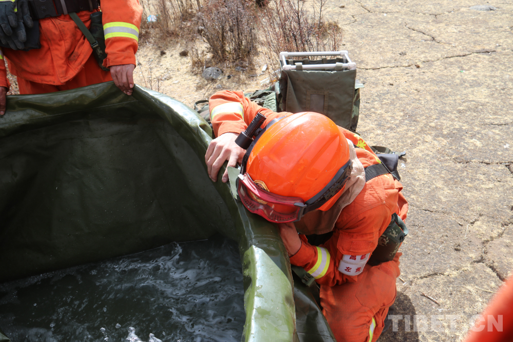 就在這時(shí),忽然傳來一句“班長,蓄水池塌下去了”。原來是四級消防士嘎瑪珠杰發(fā)現(xiàn)水帶的水進(jìn)入蓄水池后,蓄水池并不能“站”起來,趕緊向班長蘇富康報(bào)告。